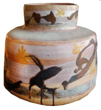1991dexter vase kilshaw 4649-032411-1 ← Previous Next → 14″ DIAMETER (BASE) HAND THROWN CERAMIC VASE DECORATED WITH ABSTRACT AND FOLIATE MOTIFS, SIGNED AND DATED (WALTER) DEXTER, ’91 $400 – 600 Auction date: Mar 24, 2011 Lot #: 281 Sold for: $400