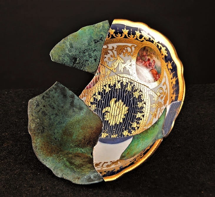 2017c powning reconstruction ← Previous Next → Peter Powning. 2017. Reconstruction Bowl 1. Cast bronze and found porcelain. 21.5 cm h x 31 cm w. 25 cm d. Peter Powning. 2017. Reconstruction Bowl 1. Cast bronze and found porcelain. 21.5 cm h x 31 cm w. 25 cm d.