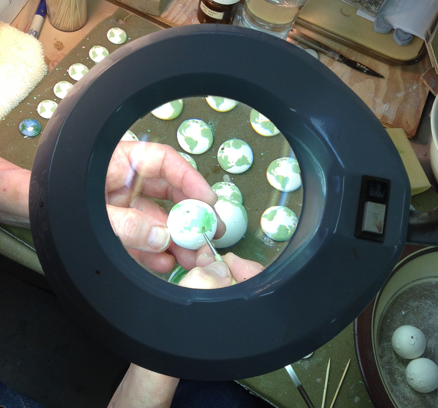 b-w globe pendant carving ← Previous Next → Pam Birdsall carving an earth pendant. Pam Birdsall carving an earth pendant.