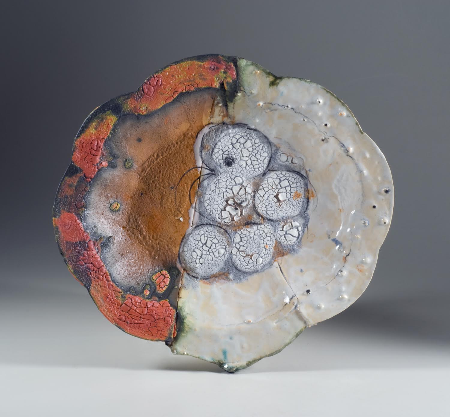 John Chalke. Five Circles, 2012. 36 x 41 x 5 cm. Hand built, altered, layered multiple glazes, multiple firings (cone 05-04). Photograph: Barbara Tipton