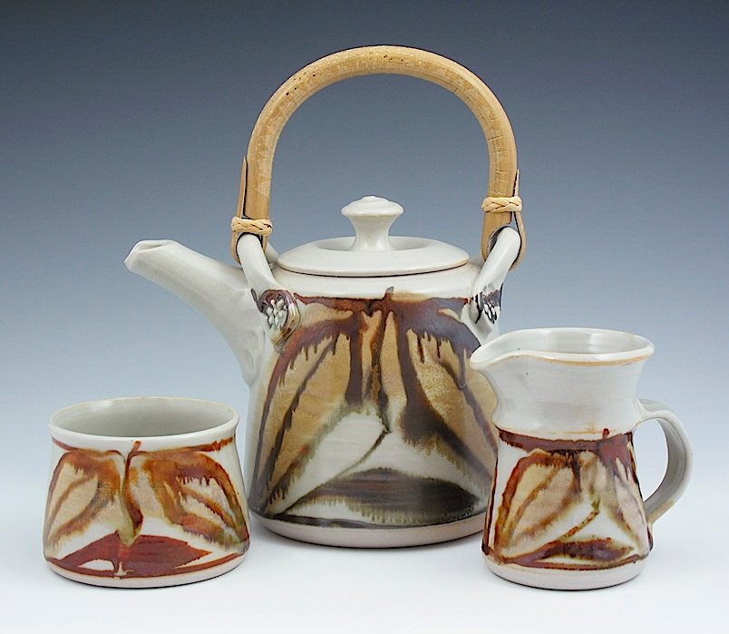 hopper teapot facebook 11020799_829538273779326_6631935505676514551_n ← Previous Next → Robin Hopper. 4 – 6 cup teapot, cream and sugar -2005. Gas reduction fired porcelain, over glaze decoration in the majolica style. Cone 10. Teapot 22.9cm. Like Loading...