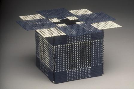 “In these Boxes I have deliberately left the “inner workings” to the viewer’s imagination, embellishing the external instead, in an ambiguous way. The boxes have been compared to things as diverse as Japanese tea houses, Catholic confessionals and Muslim women’s burkas. They intentionally utilize the feminine principal of containment and enclosure, and are intended as a metaphor for women, including myself. For me, the simulation/illusion of weaving is another way to celebrate women’s work over the centuries.”3