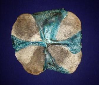 Ann Mortimer, St. Andreas Fault 1990 Clay, slip cast, altered, airbrushed with oxides and glazes, oxidation fired. Approx. 30.0 x 30.0 x 1.5 cm.